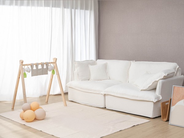 它像一團落在地板上的雲,輕柔、鬆軟,存在,卻不搶眼;溫暖,卻不刻意。