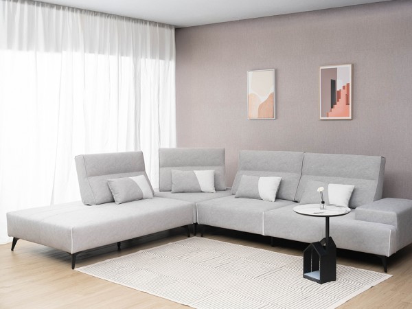 三座+貴妃的恰好結構,搭配獨立靠墊、俐落椅腳,讓沙發不再沉重,